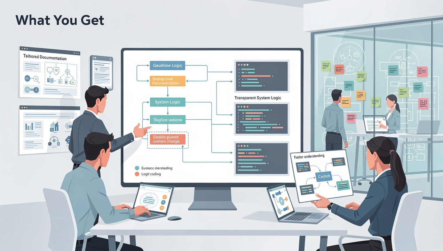 You receive well-structured, human-readable documentation explaining how the system works—ready to use and easy to share.